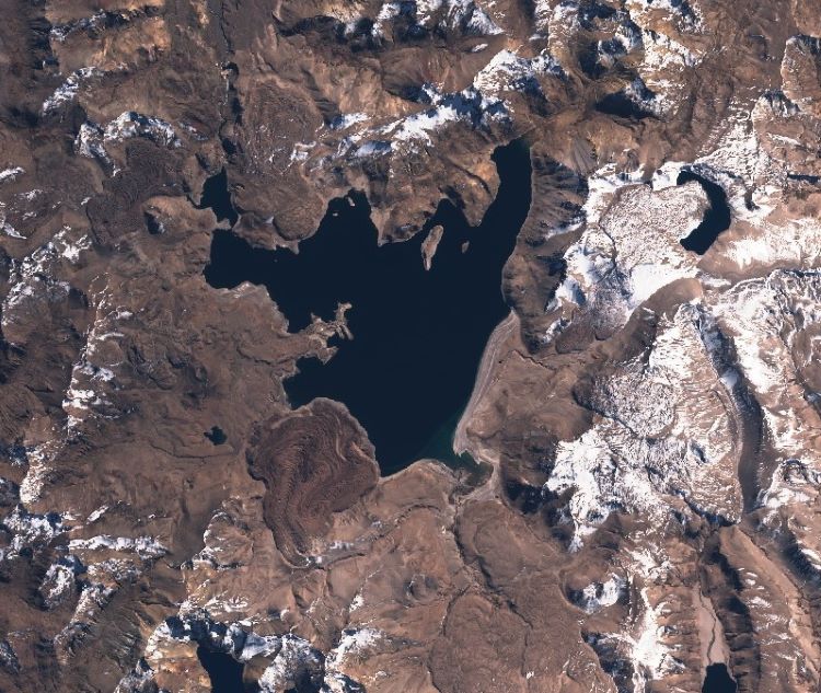 Imagen 1 desde el satélite. Fotografía de Laguna del Maule, en Chile, el 13 de mayo de 2020. Crédito: Copernicus EU/Sentinel2